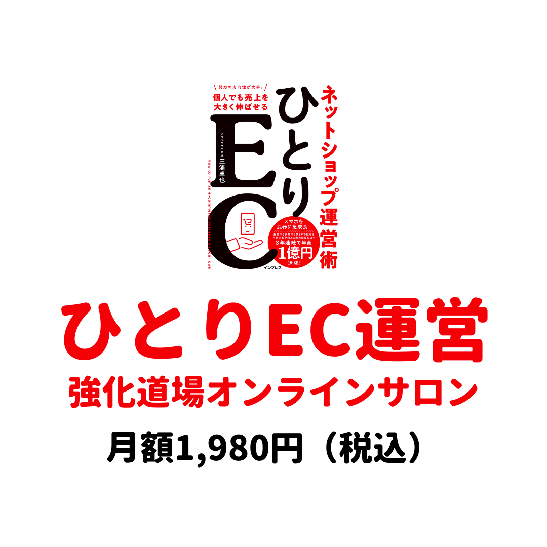 これひとりECな人みんな買った方がええよ。三浦さんのサロンもついでに月額1,980円(だったかな)と高コスパやから入った方がええよ。